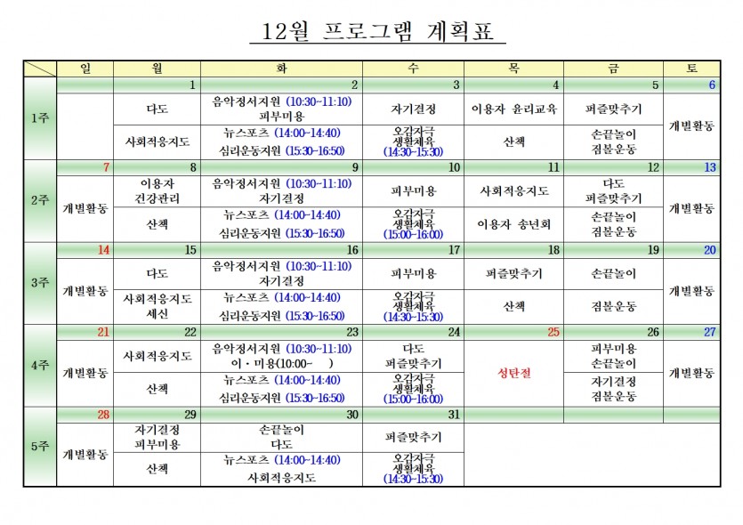 25년 12월 월간프로그램 계획표 > 자유게시판