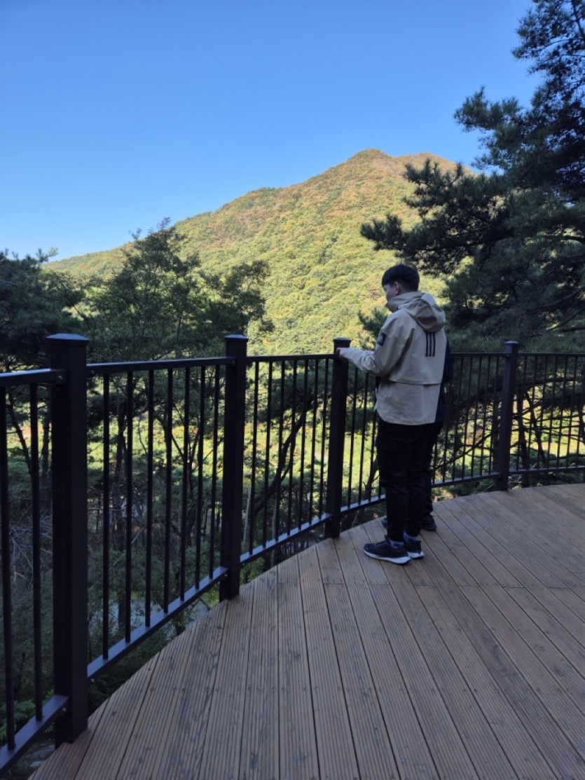 2일차 캠프 아침 일찍 일어난 이용자분들과 함께 아침 맑은 산 공기를 느끼며 가벼운 아침 등산을 했습니다.